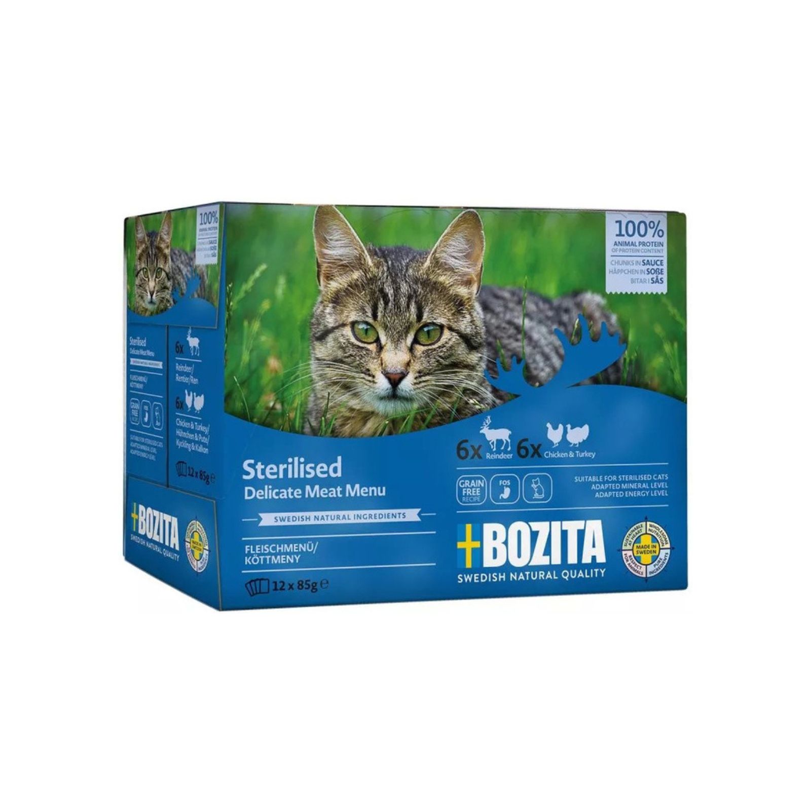 BOZITA Zestaw 12 saszetek: mięsne kawałki w sosie 12x85g
