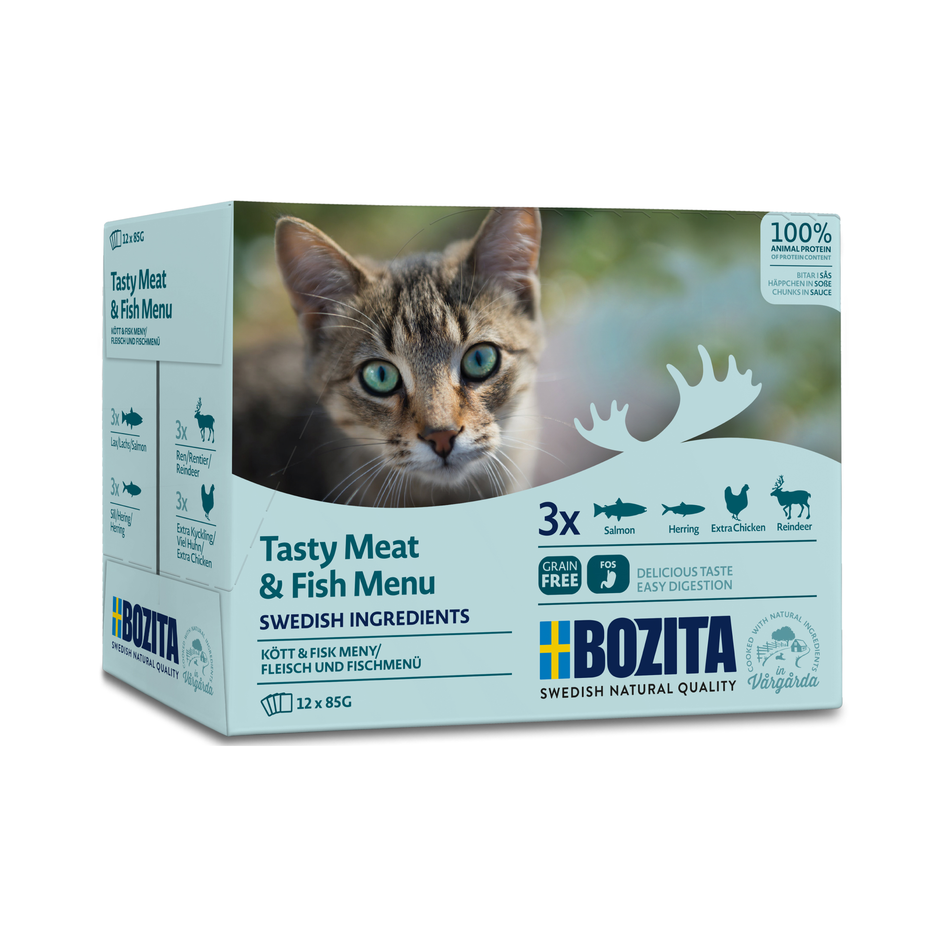 BOZITA Zestaw 12 saszetek: mięsne i rybne kawałki w sosie 12x85g