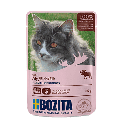 Bozita mokra karma w saszetkach w galaretce to szwedzka jakość i smakowite pożywienie dla Twojego kota zawierające wszystkie niezbędne witaminy, aminokwasy i minerały. Jest to pełnoporcjowa, bezzbożowa karma, bez GMO, która  w swoim składzie nie zawiera glutenu, cukru, soi ani żadnych barwników i sztucznych konserwantów. Te pyszne mięsne kawałki w galaretce są pełnowartościowym posiłkiem dla Twojego pupila a swoim smakiem i aromatem zachwyci nawet wyszukane podniebienia.
