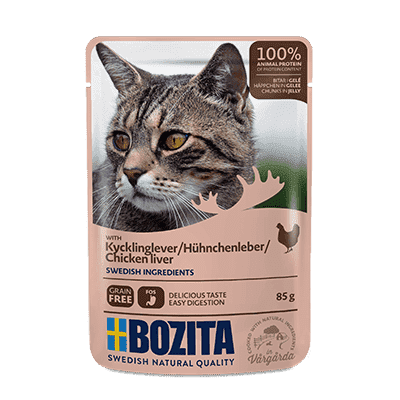 Bozita mokra karma w saszetkach w galaretce to szwedzka jakość i smakowite pożywienie dla Twojego kota zawierające wszystkie niezbędne witaminy, aminokwasy i minerały. Jest to pełnoporcjowa, bezzbożowa karma, bez GMO, która  w swoim składzie nie zawiera glutenu, cukru, soi ani żadnych barwników i sztucznych konserwantów. Te pyszne mięsne kawałki w galaretce są pełnowartościowym posiłkiem dla Twojego pupila a swoim smakiem i aromatem zachwyci nawet wyszukane podniebienia.