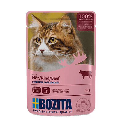 Bozita mokra karma w saszetkach w galaretce to szwedzka jakość i smakowite pożywienie dla Twojego kota zawierające wszystkie niezbędne witaminy, aminokwasy i minerały. Jest to pełnoporcjowa, bezzbożowa karma, bez GMO, która  w swoim składzie nie zawiera glutenu, cukru, soi ani żadnych barwników i sztucznych konserwantów. Te pyszne mięsne kawałki w galaretce są pełnowartościowym posiłkiem dla Twojego pupila a swoim smakiem i aromatem zachwyci nawet wyszukane podniebienia.