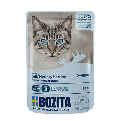 Bozita mokra karma w saszetkach w sosie to szwedzka jakość i smakowite pożywienie dla Twojego kota zawierające wszystkie niezbędne witaminy, aminokwasy i minerały. Jest to pełnoporcjowa, bezzbożowa karma, bez GMO, która  w swoim składzie nie zawiera glutenu, cukru, soi ani żadnych barwników i sztucznych konserwantów. Te pyszne mięsne kawałki w sosie są pełnowartościowym posiłkiem dla Twojego pupila a swoim smakiem i aromatem zachwyci nawet wyszukane podniebienia.