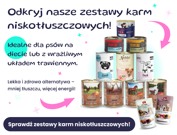 Dieta niskotłuszczowa może być idealnym rozwiązaniem dla Twojego psa, jeśli chcesz zadbać o jego zdrowie i samopoczucie. Psy często potrzebują specjalistycznej diety – szczególnie przy nadwadze, problemach trawiennych czy innych dolegliwościach. Wybierając karmę o obniżonej zawartości tłuszczu, dostarczasz pupilowi pełnowartościowe, lekkostrawne składniki, które wspierają organizm bez obciążenia. Taka dieta pomaga utrzymać zdrową wagę, chroni układ pokarmowy i wspiera codzienną energię. Sprawdź naszą ofertę niskotłuszczowych karm i wybierz tę, która najlepiej odpowiada potrzebom Twojego pupila!