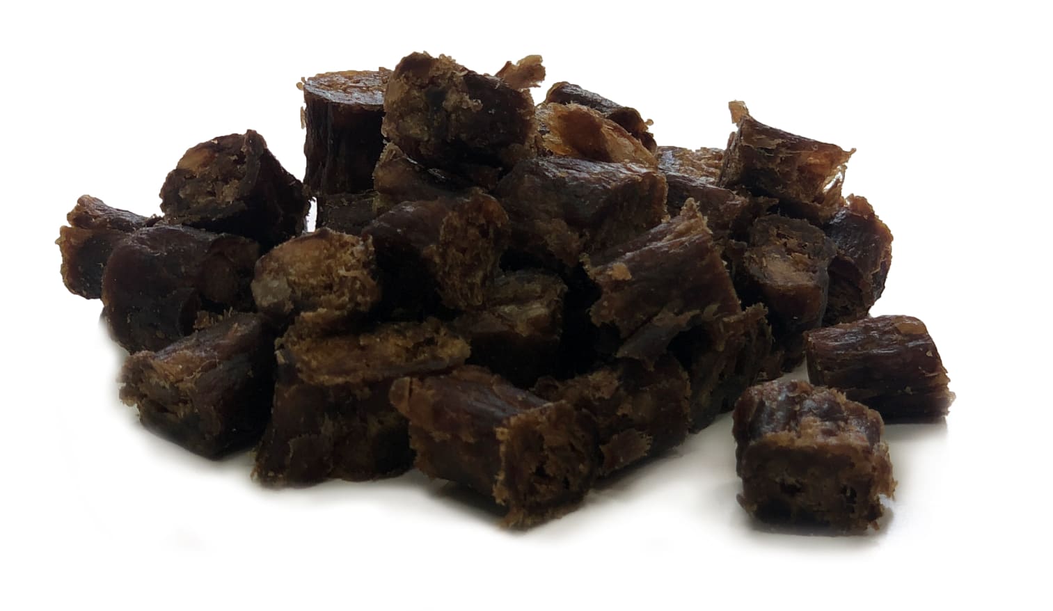 - 99% wołowina (w tym 60% mięso, 39% podroby), 1% gliceryna