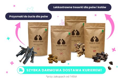 House of Treats oferuje naturalne przysmaki, takie jak mini treserki dla psów i kotów, a także suszone gryzaki dla psów. Produkty te są bogate w białko i nie zawierają sztucznych dodatków, co czyni je odpowiednimi nawet dla zwierząt z wrażliwym układem pokarmowym. Wybierając przysmaki House of Treats, zapewniasz swojemu pupilowi zdrowe uzupełnienie diety, które nie tylko wspiera jego kondycję, ale także dostarcza mu radości z żucia i nagradzania. Bez względu na to, czy szukasz smakołyków na trening, nagrodę czy codzienną przekąskę, w tej sekcji znajdziesz coś idealnego dla swojego czworonoga.