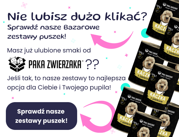 PAKA ZWIERZAKA posiada linię karm i smakołyków najwyższej jakości, które zaspokoją nawet najbardziej wybredne podniebienia Waszych pupili! Ich pełne smaku mokre karmy są idealnym źródłem cennych witamin i minerałów, takich jak żelazo czy witaminy z grupy B. Przysmaki tej marki cieszą się szczególną popularnością ze względu na świeże i w 100% naturalne składniki. Sprawdź naszą ofertę karm i przysmaków PAKA ZWIERZAKA!