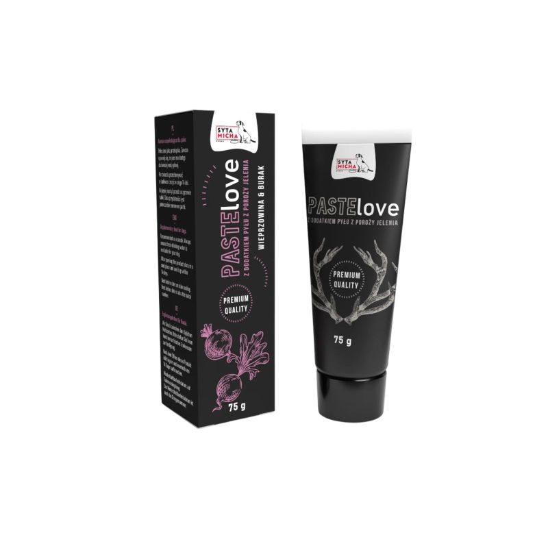 PASTElove mięsna pasta z wieprzowiną i burakiem to innowacyjny przysmak dla psa w formie kremowej pasty. Powstała wyłącznie z naturalnych składników jakości Human Grade i dostarcza pupilowi cennych witamin, minerałów oraz białka w smacznej i łatwej do podania formie.