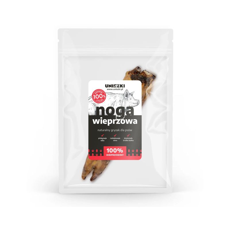 Noga wieprzowa to naturalny przysmak o średniej twardości, który doskonale zaspokaja potrzebę gryzienia u psów. Regularne podawanie tego gryzaka pomaga w utrzymaniu higieny jamy ustnej. Usuwa płytkę nazębną i kamień, dzięki czemu Twój pupil może cieszyć się zdrowymi zębami i dziąsłami.Gryzienie to nie tylko sposób na czyste zęby, ale również doskonały trening mięśni szczęki. Noga wieprzowa wspiera zdrowie stawów i żuchwy, a przy tym jest świetnym sposobem na zminimalizowanie stresu i nadmiaru energii.