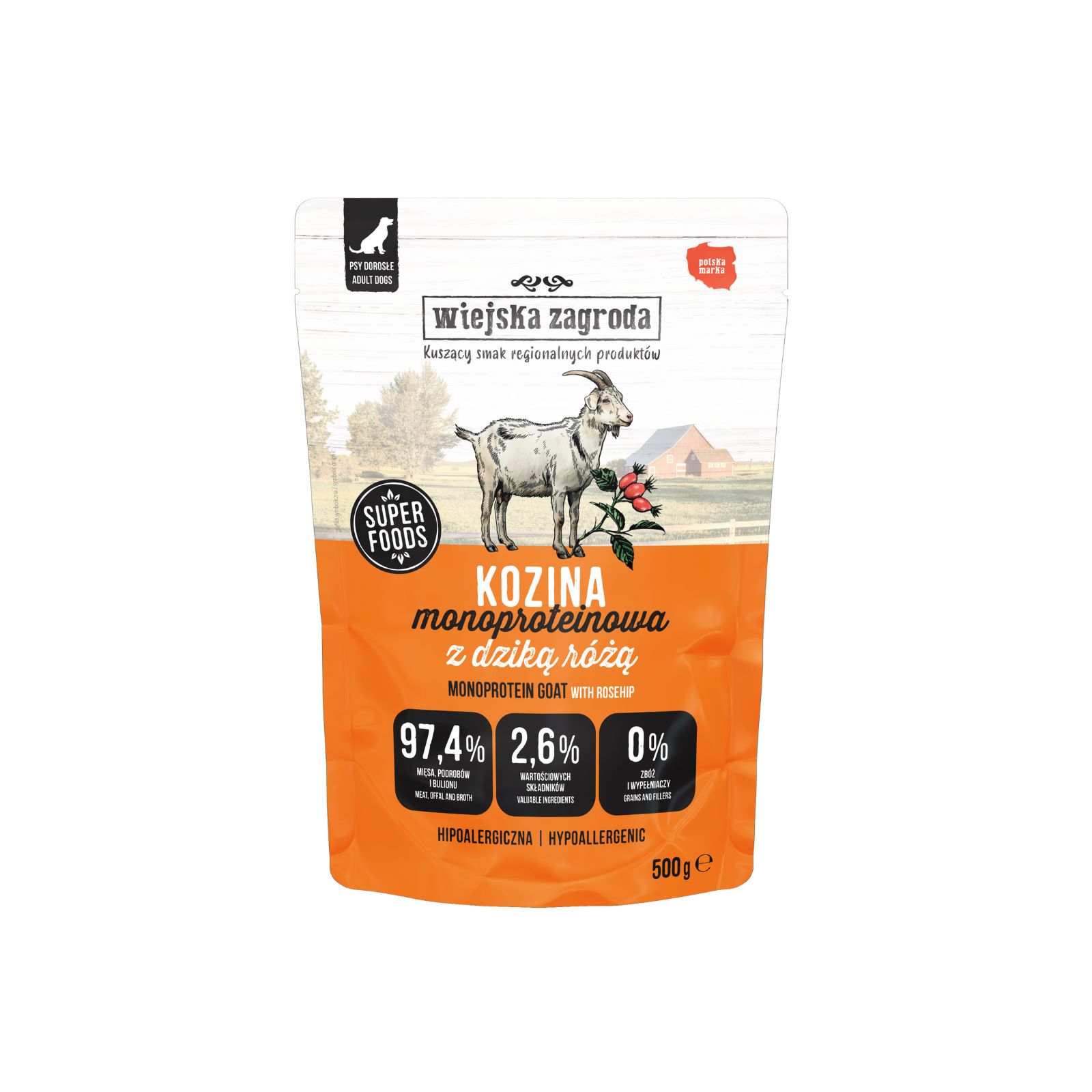 Wiejska Zagroda karma mokra monoproteinowa Kozina z dziką różą
