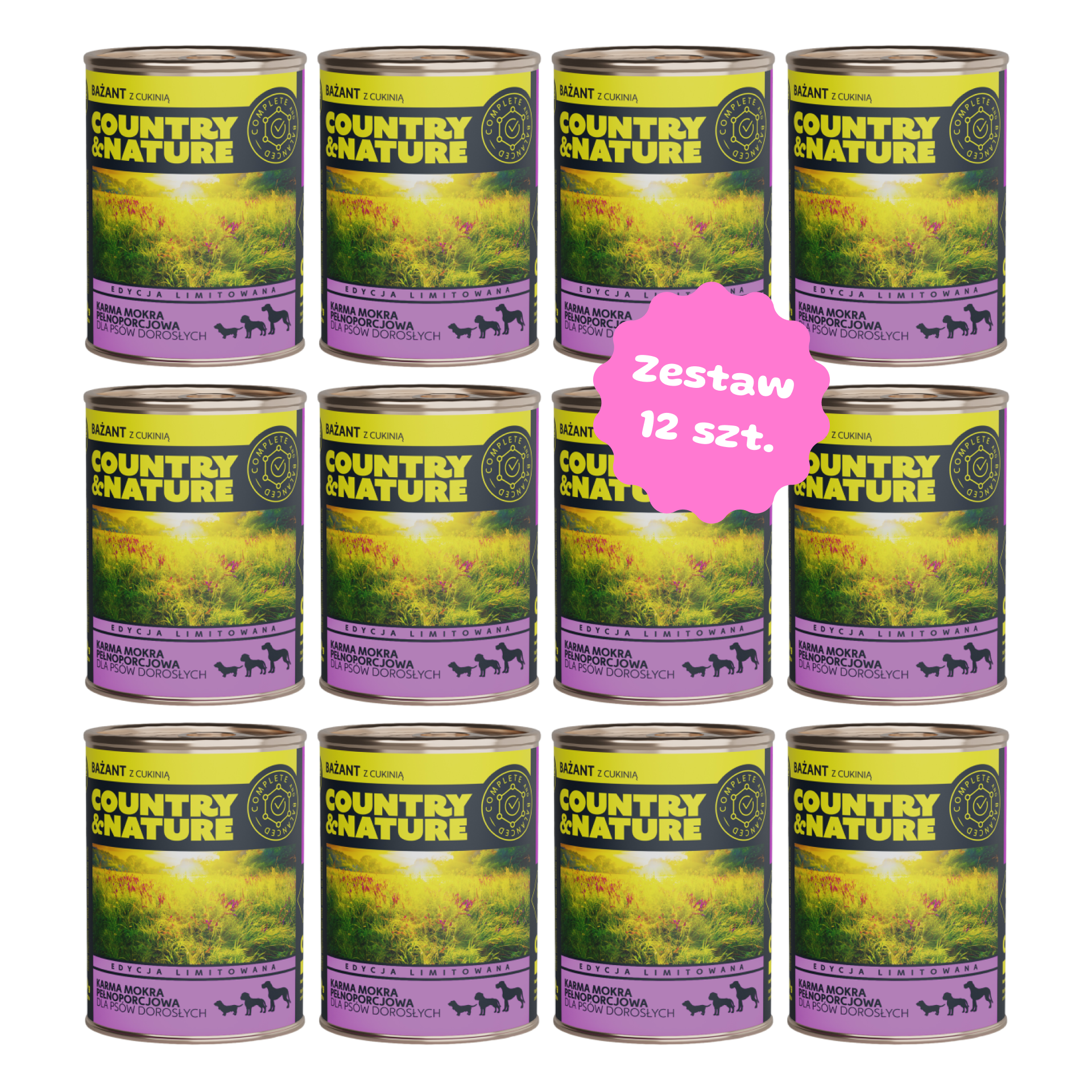 Zestaw 12szt. puszek 800g - COUNTRY&NATURE o smaku bażanta z gruszką i bakłażanem