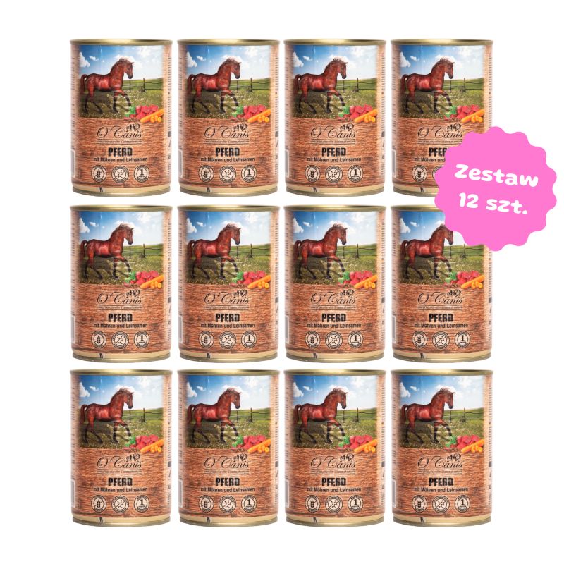 Zestaw 12szt. puszek 400g - O'Canis konina z warzywami i siemieniem lnianym